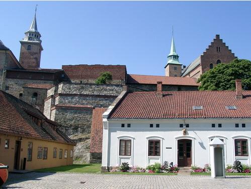 阿肯修弗斯城建于1300年,由哈康五世建造,目前的建筑为17世纪初由克里斯蒂安四世改建而成。阿肯修弗斯城堡在1905和1963年之间被定为文化财产。国外政要来访时在这里举办宴会。